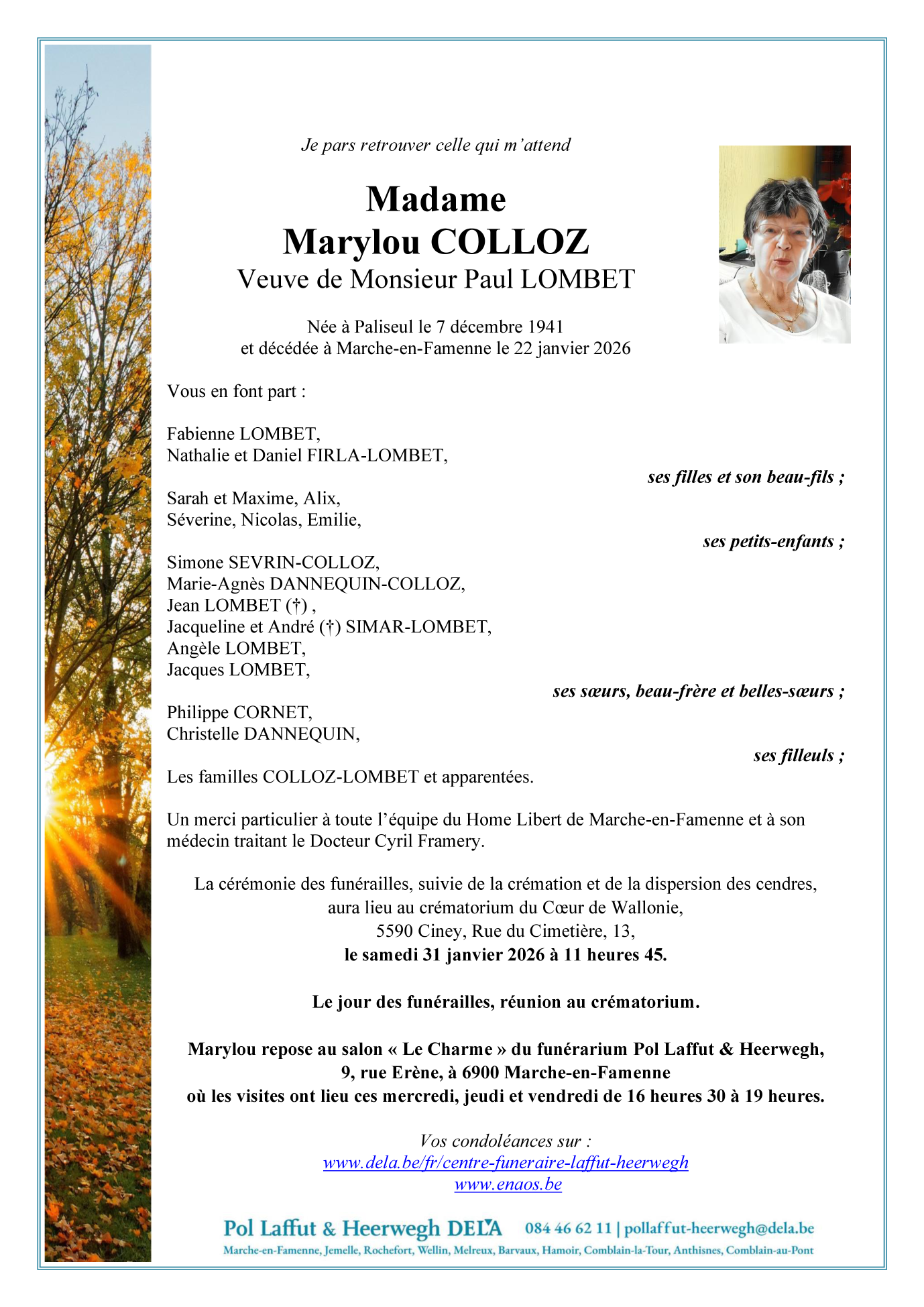 Overleden te Marche-en-Famenne (6900) op donderdag 22 januari 2026 op 84-jarige leeftijd