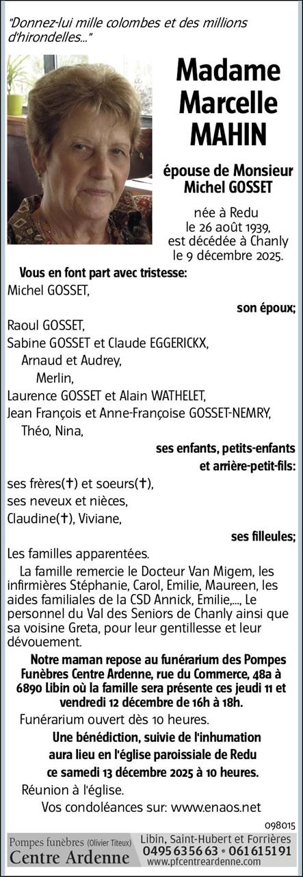 Overleden te Chanly (6921) op dinsdag 9 december 2025 op 86-jarige leeftijd
