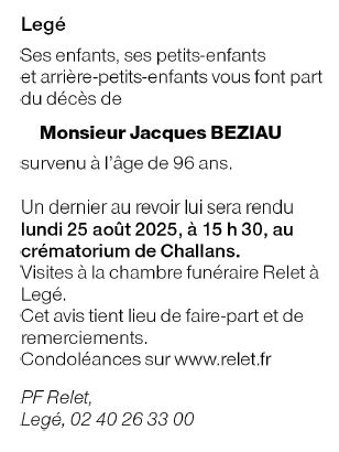 Died in Touvois (44650, France) on 21 August 2025 at the age of 96 years