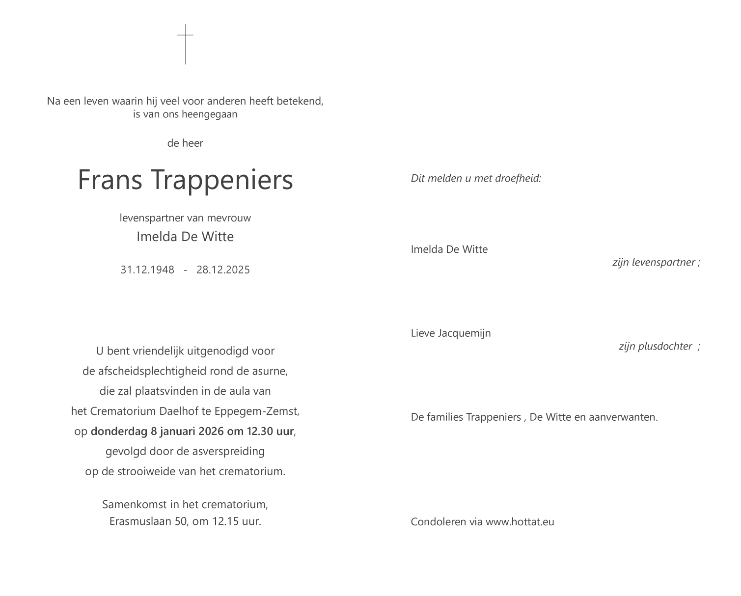 Décédé à Vilvoorde (1800) le dimanche 28 décembre 2025 à l'âge de 76 ans