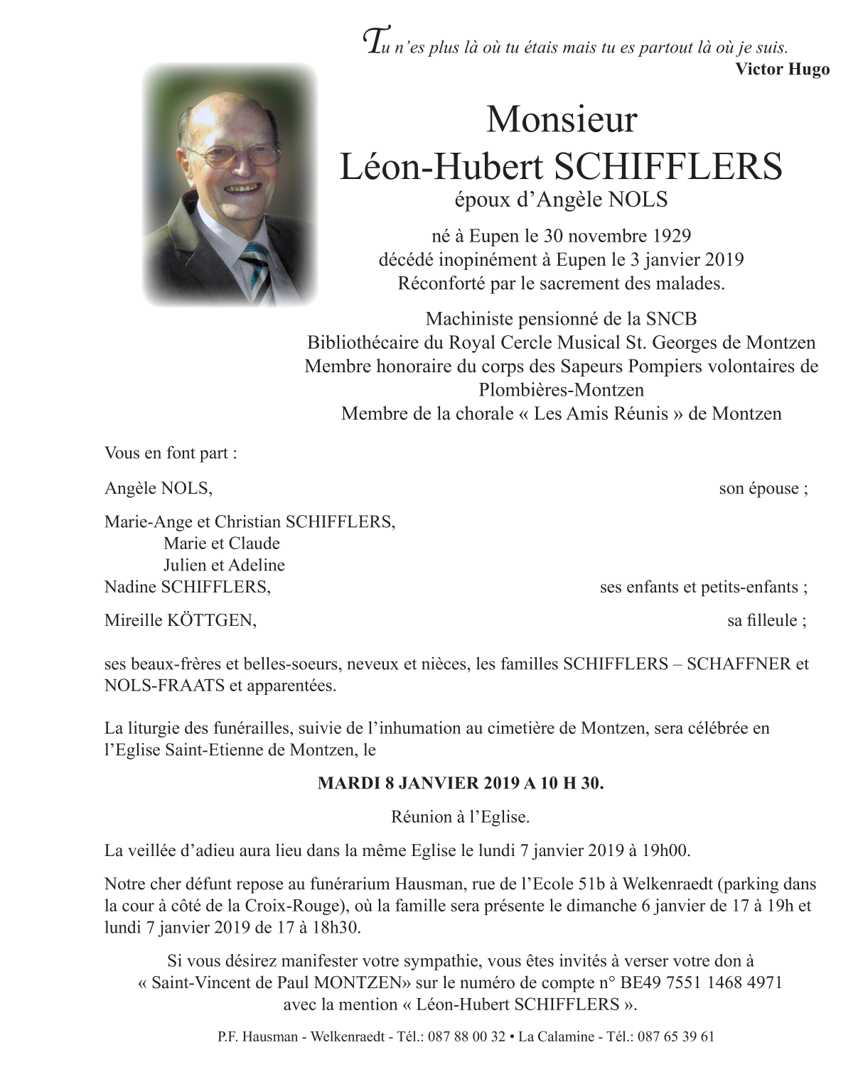 Fallecido en Eupen (4700) el jueves, 3 de enero de 2019 a la edad de 89 años