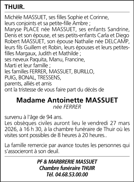 Died in Prades (66500, France) on 21 March 2026 at the age of 94 years