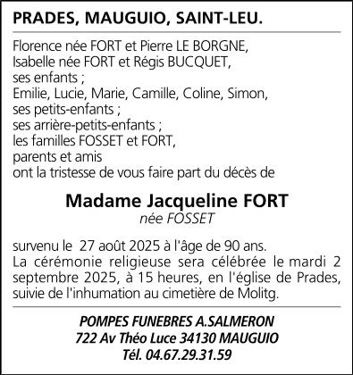 Madame Jacqueline FORT née FOSSET