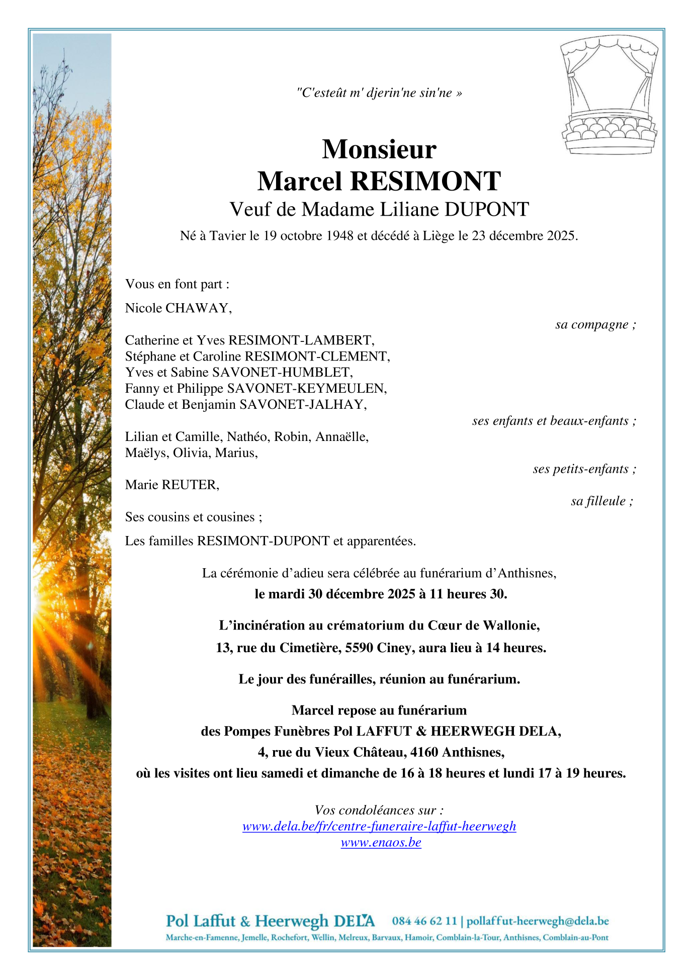 Décédé à Liège (4000) le mardi 23 décembre 2025 à l'âge de 77 ans