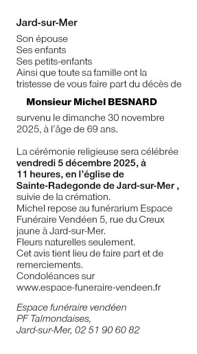Décédé à Les Sables d'Olonne (85340, France) le dimanche 30 novembre 2025 à l'âge de 69 ans