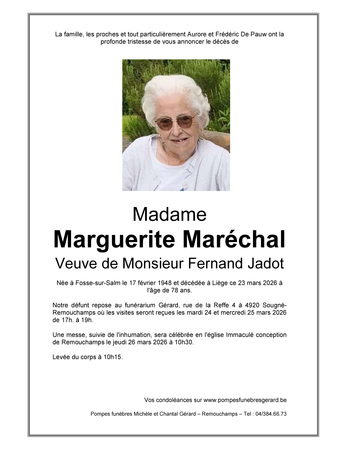 Décédée à Liège (4000) le dimanche 22 mars 2026 à l'âge de 78 ans