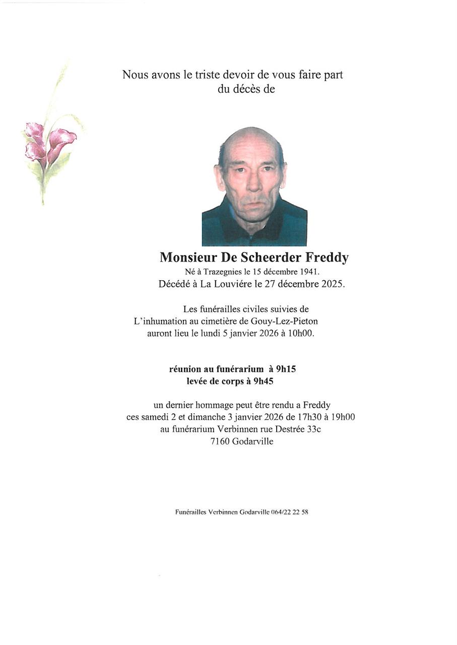 Overleden te La Louvière (7100) op zaterdag 27 december 2025 op 84-jarige leeftijd