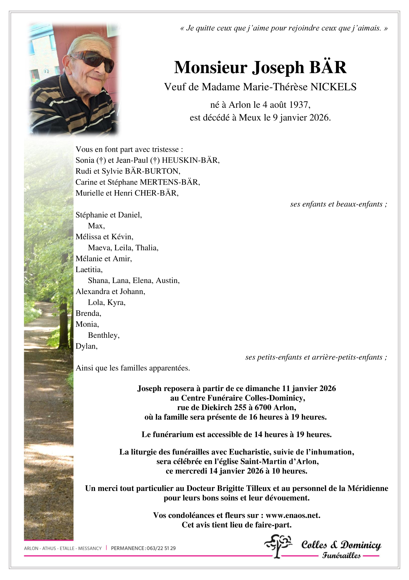 Overleden te Meux (5081) op vrijdag 9 januari 2026 op 88-jarige leeftijd