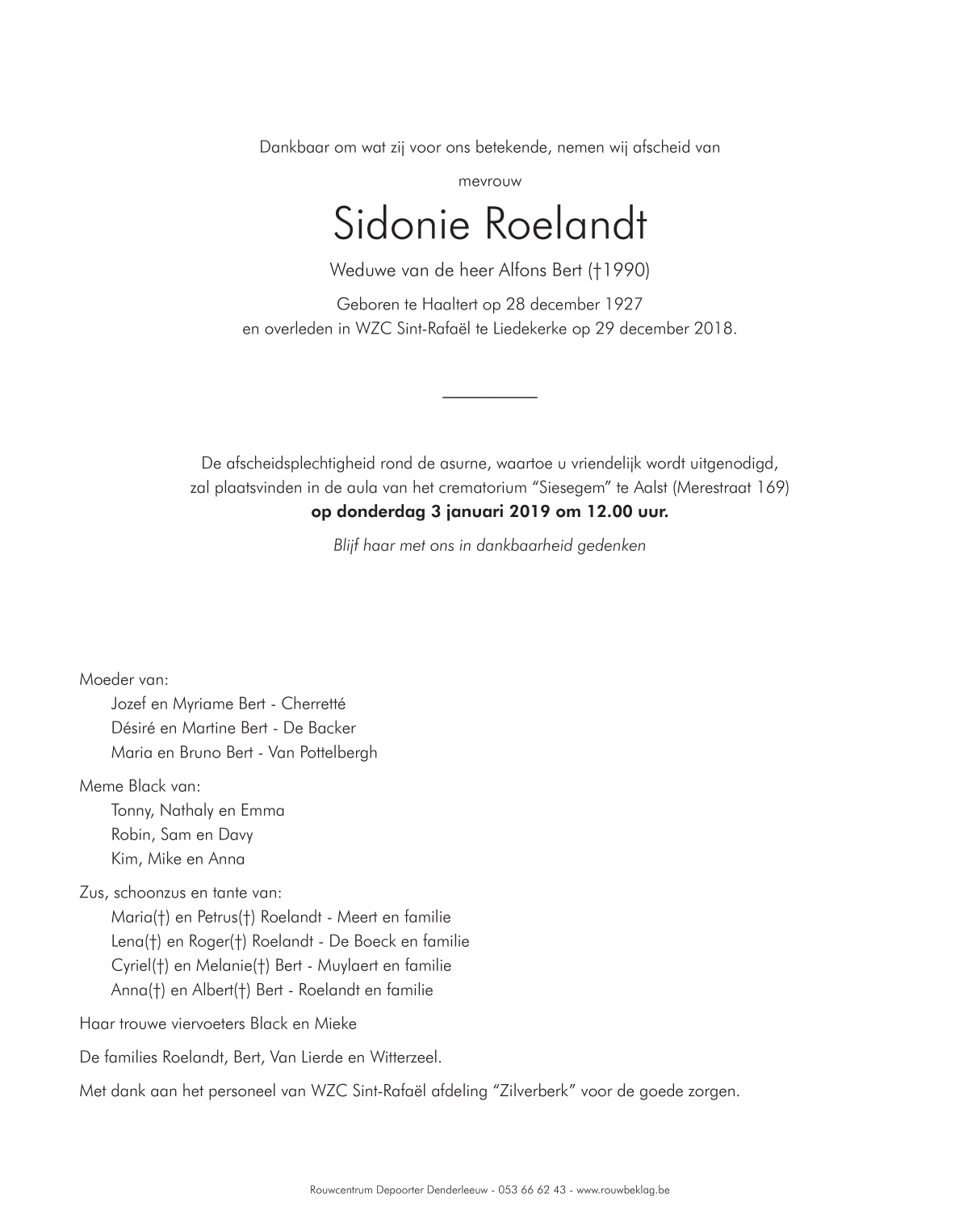 Overleden te Liedekerke (1770) op zaterdag 29 december 2018 op 91-jarige leeftijd