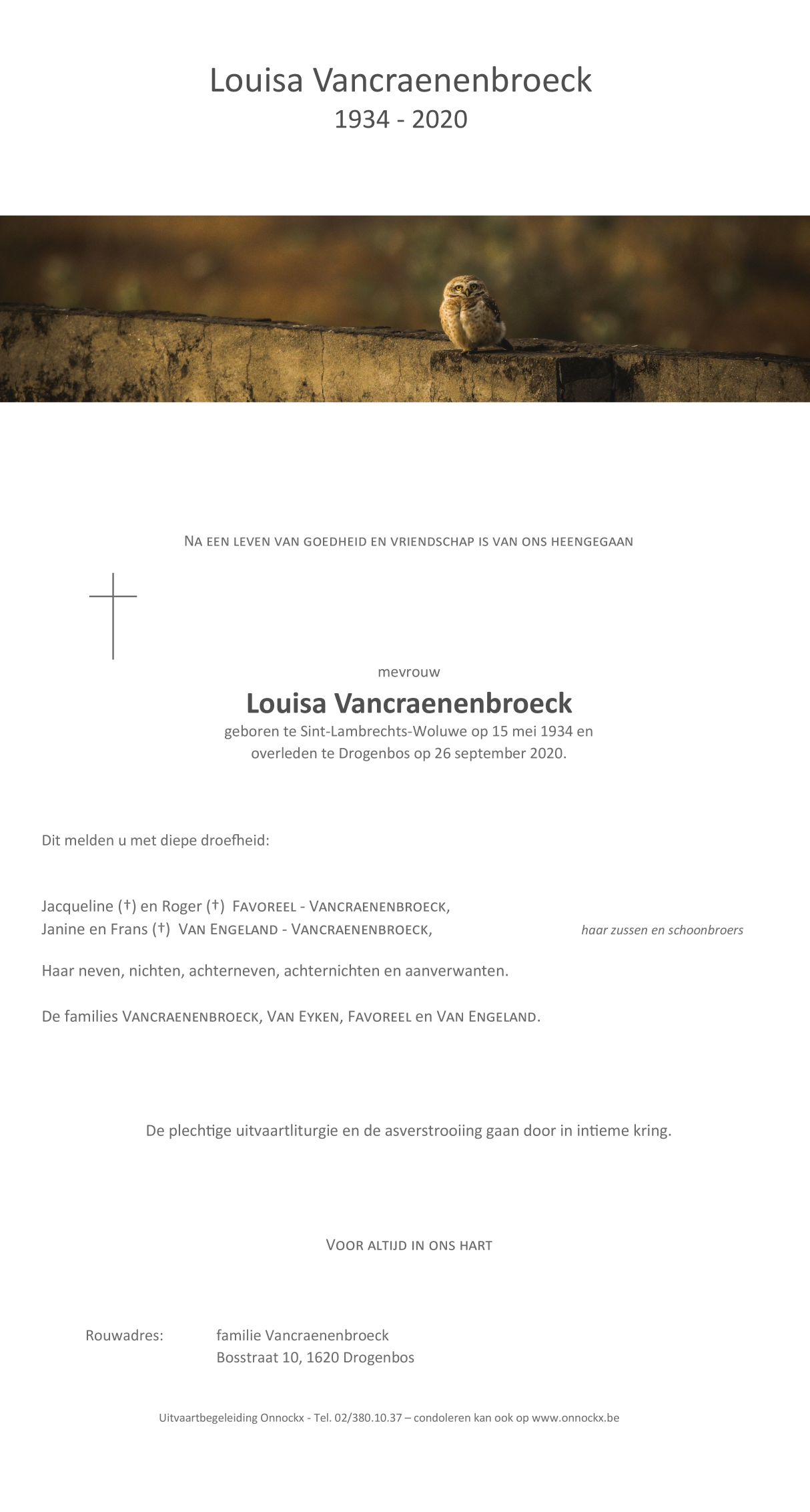 Died in Drogenbos (1620) on 26 September 2020 at the age of 86 years