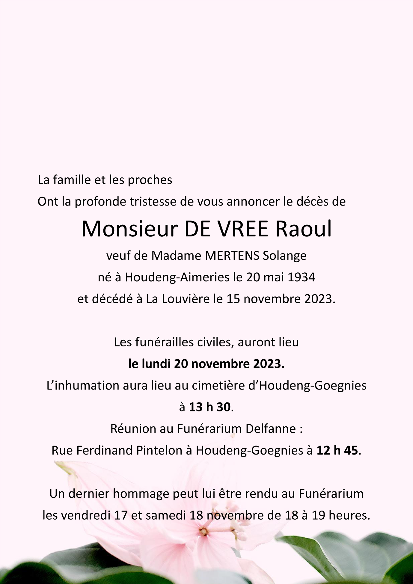 Monsieur Raoul DE VREE