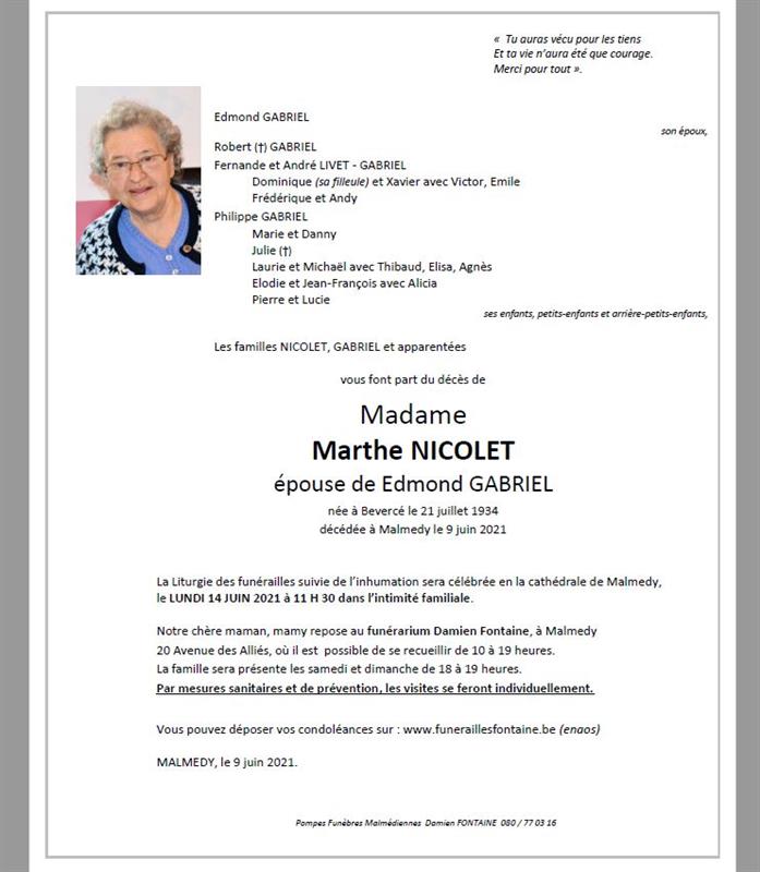Madame Marthe NICOLET épouse de Edmond GABRIEL