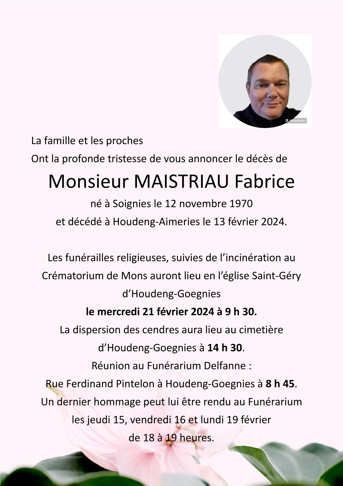 Fallecido en Houdeng-Aimeries (7110) el martes, 13 de febrero de 2024 a la edad de 53 años
