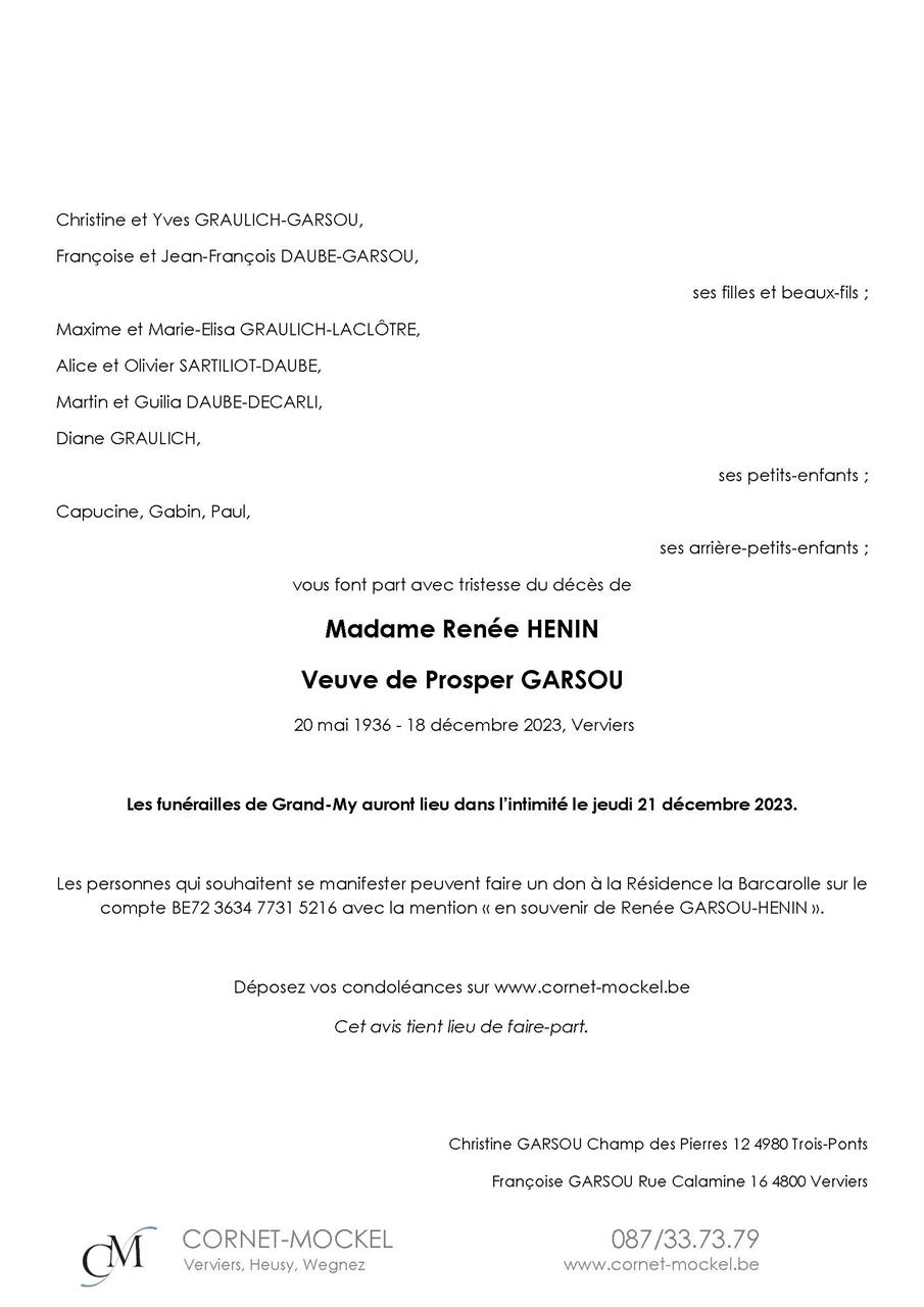 Fallecida en Stembert (4801) el lunes, 18 de diciembre de 2023 a la edad de 87 años
