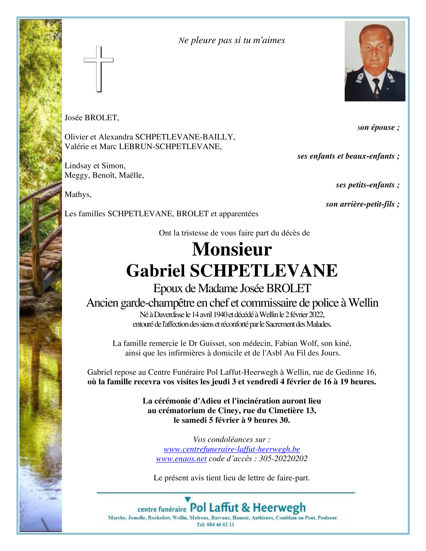 Décédé à Wellin (6920) le mercredi 2 février 2022 à l'âge de 81 ans