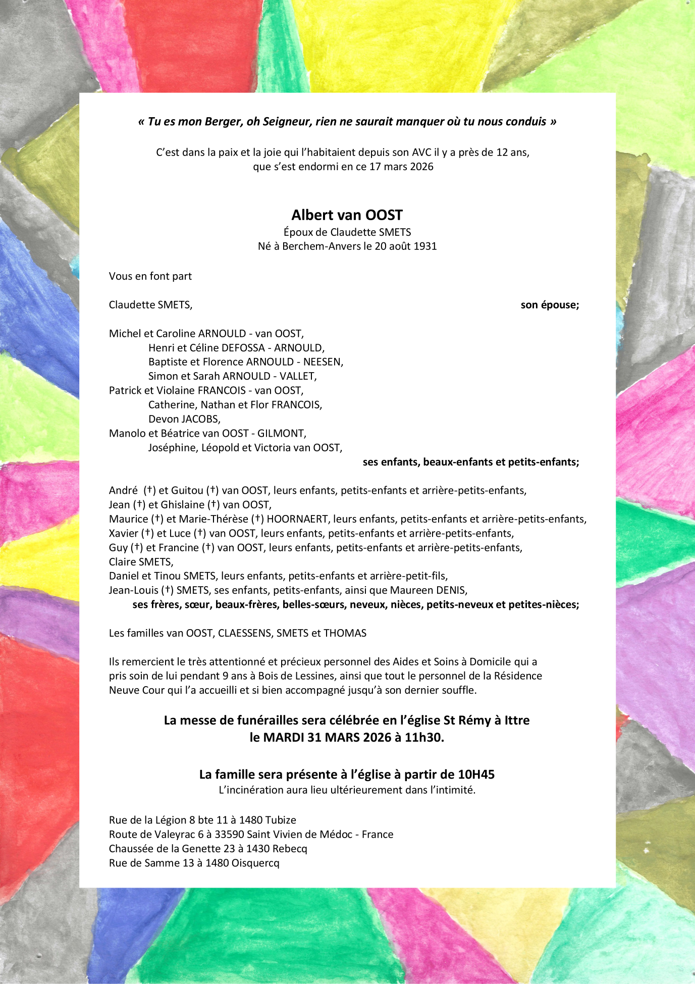 Décédé à Tubize (1480) le mardi 17 mars 2026 à l'âge de 94 ans