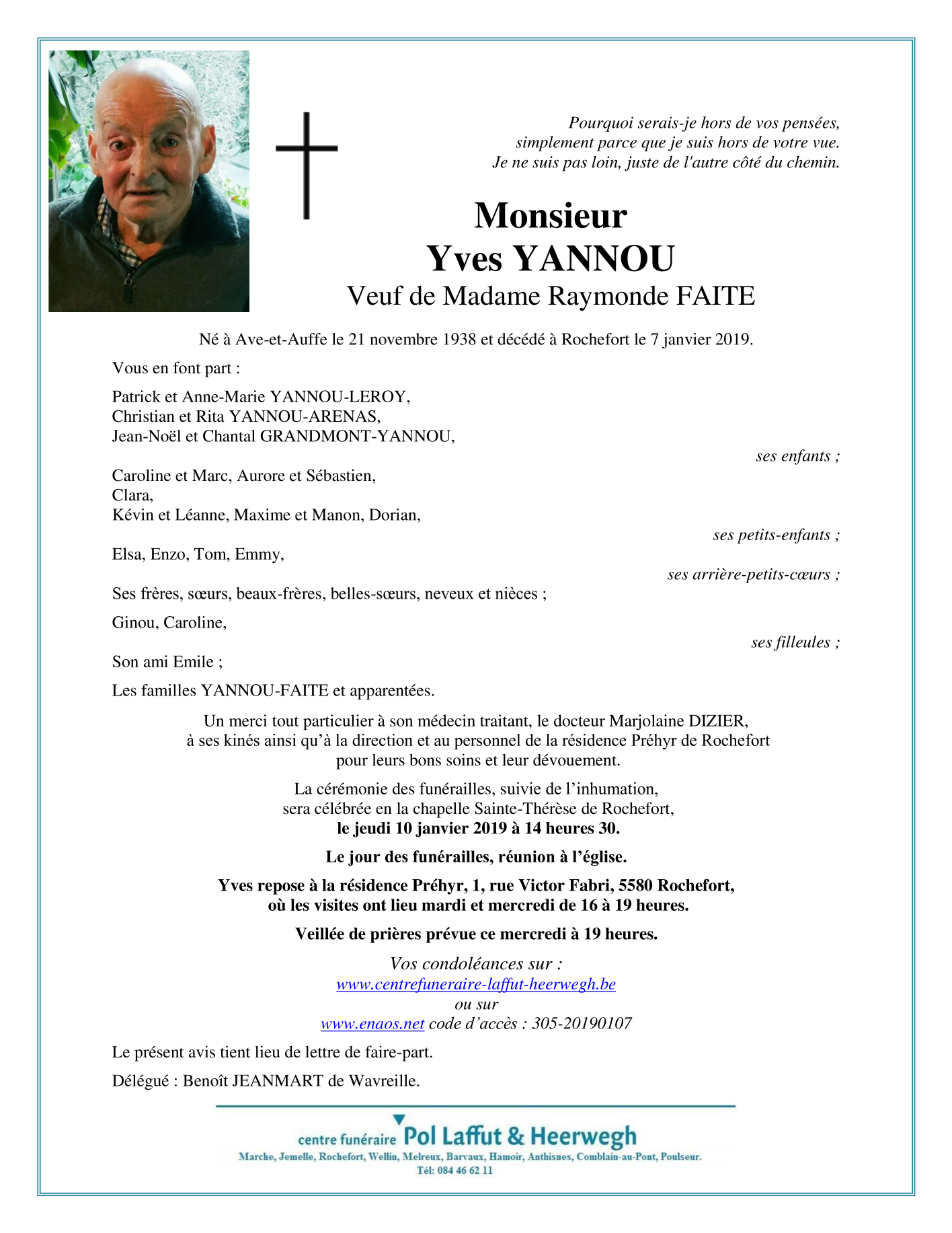Né à Ave-et-Auffe (5580) le lundi 21 novembre 1938