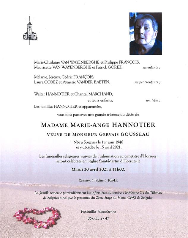 Overleden te Soignies (7060) op donderdag 15 april 2021 op 74-jarige leeftijd
