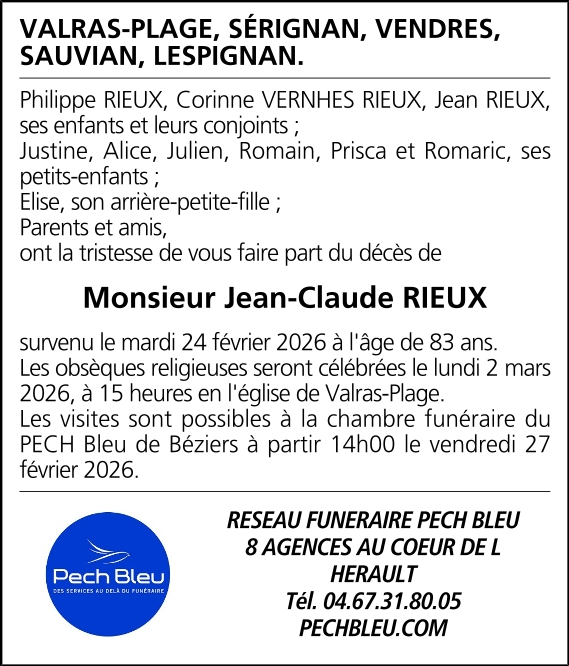Died in Béziers (34500, France) on 24 February 2026 at the age of 83 years