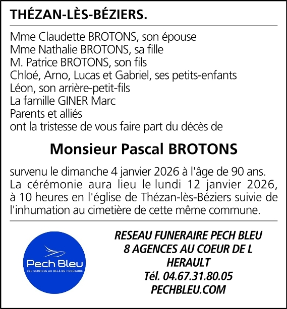 Décédé à Pézenas (34120, France) le dimanche 4 janvier 2026 à l'âge de 90 ans