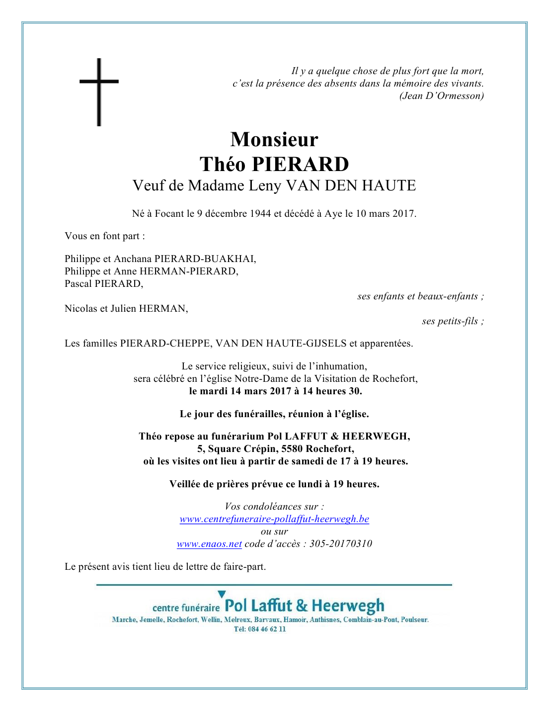 Geboren te Focant (5572) op zaterdag 9 december 1944