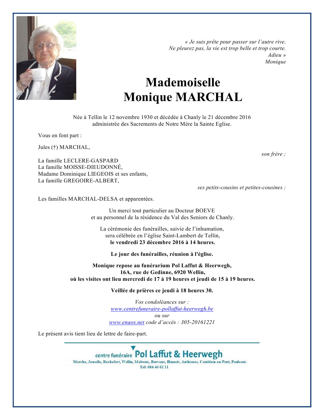 Overleden te Chanly (6921) op woensdag 21 december 2016 op 86-jarige leeftijd