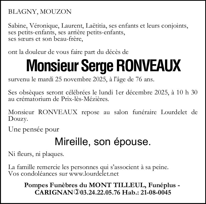Veuf de Madame Mireille RONVEAUX