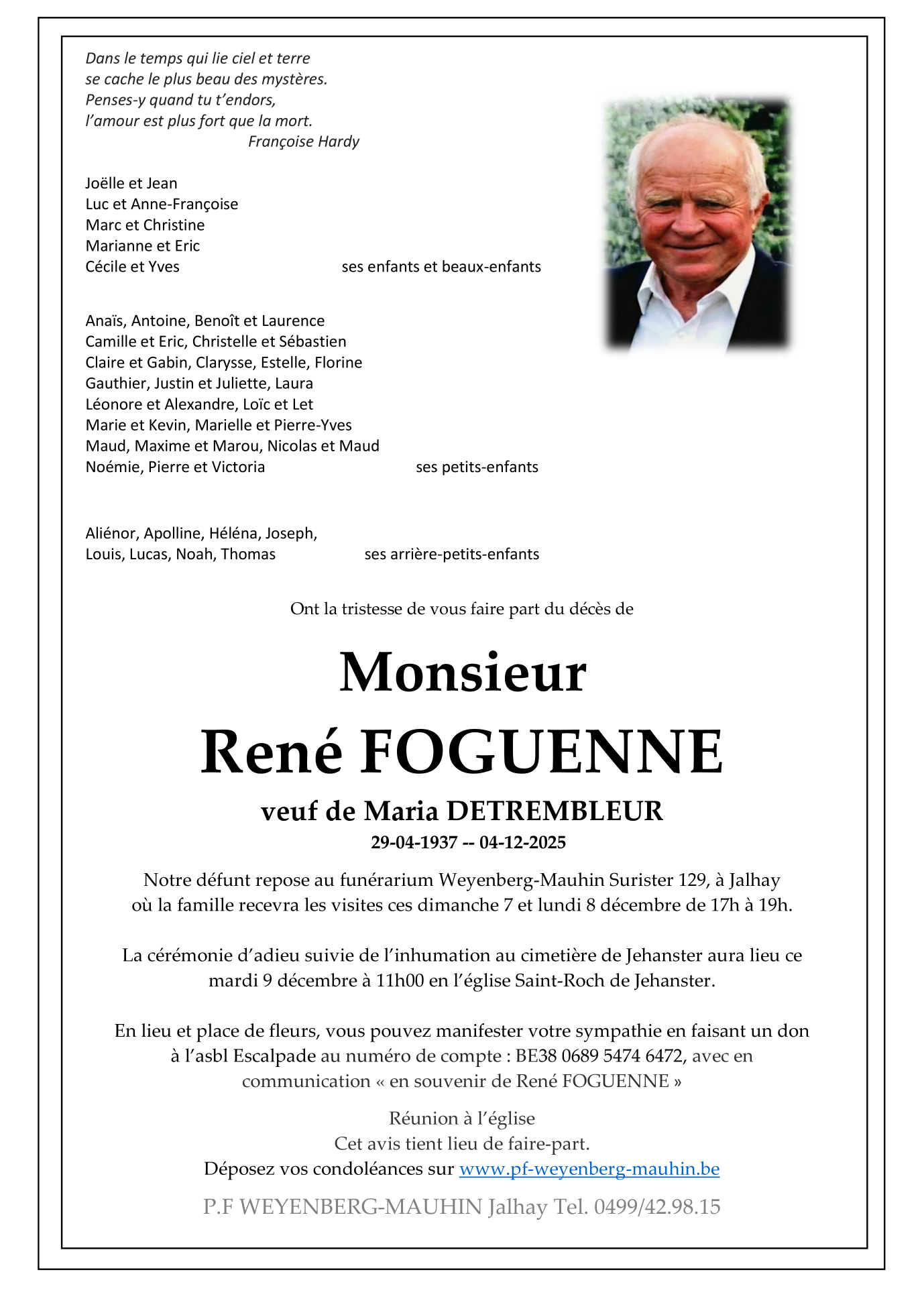 Décédé à Verviers (4800) le jeudi 4 décembre 2025 à l'âge de 88 ans
