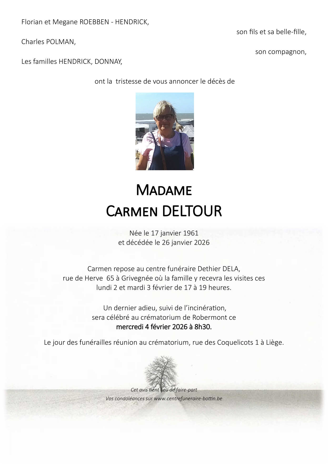 Décédée à Liège (4000) le lundi 26 janvier 2026 à l'âge de 65 ans