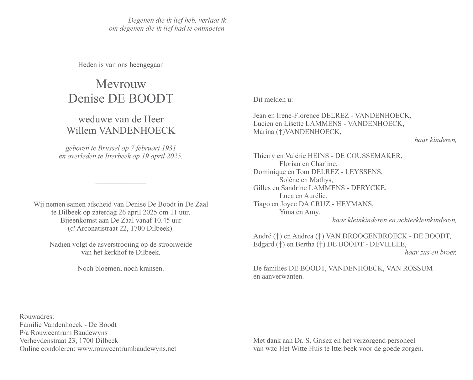 Died in Itterbeek (1701) on 19 April 2025 at the age of 94 years
