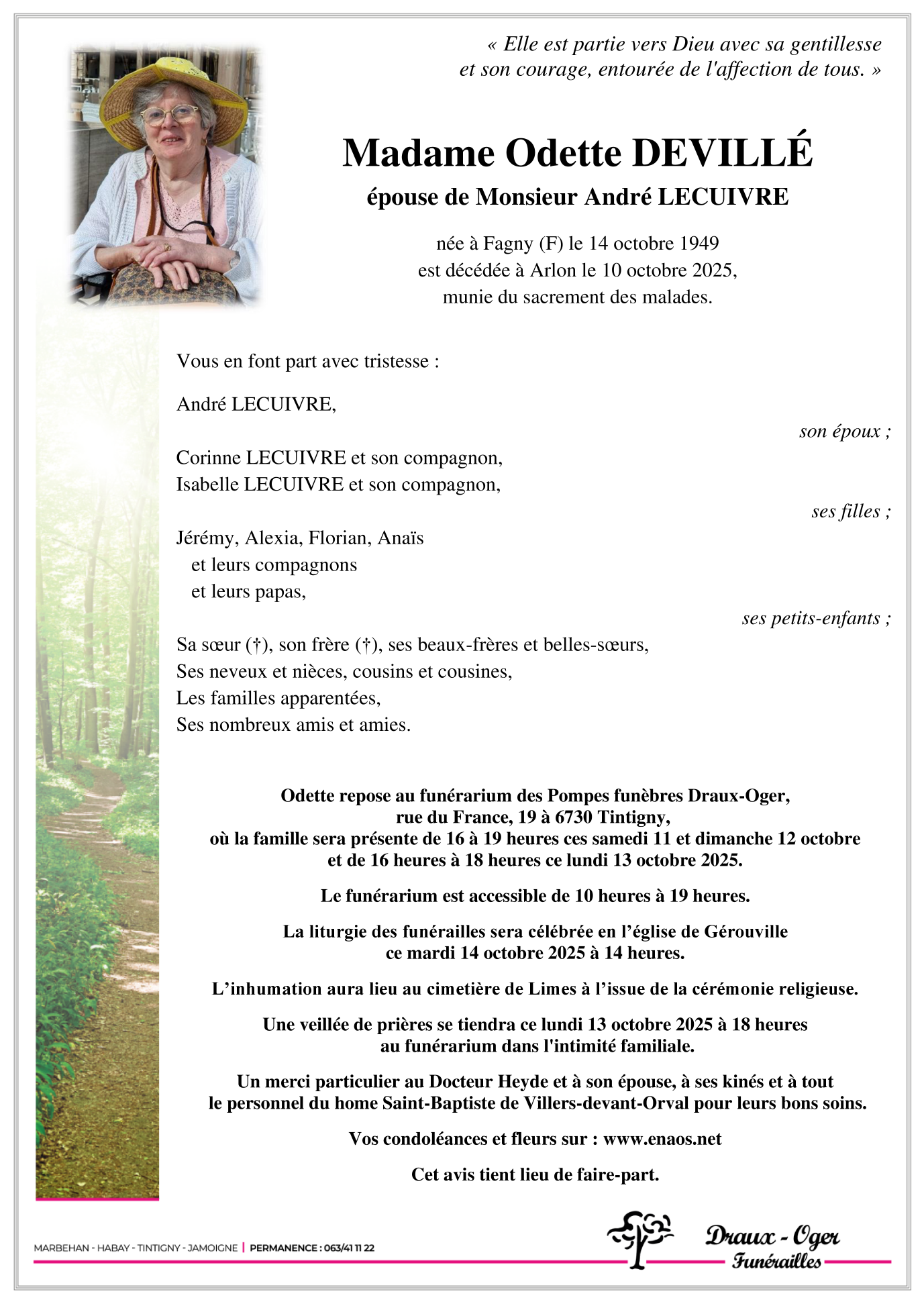 Overleden te Arlon (6700) op vrijdag 10 oktober 2025 op 75-jarige leeftijd