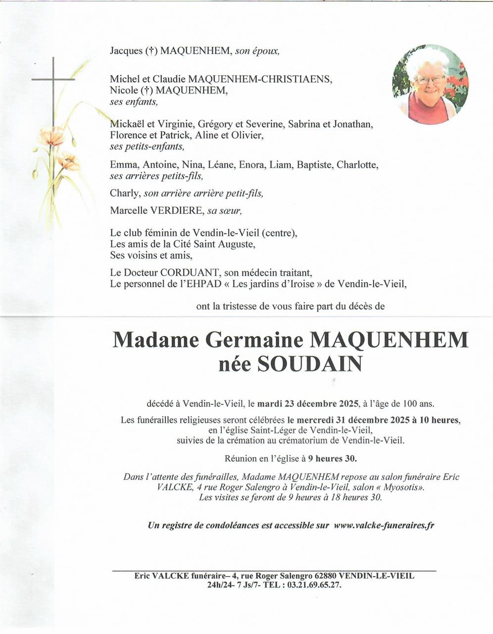 Madame Germaine MAQUENHEM née SOUDAIN