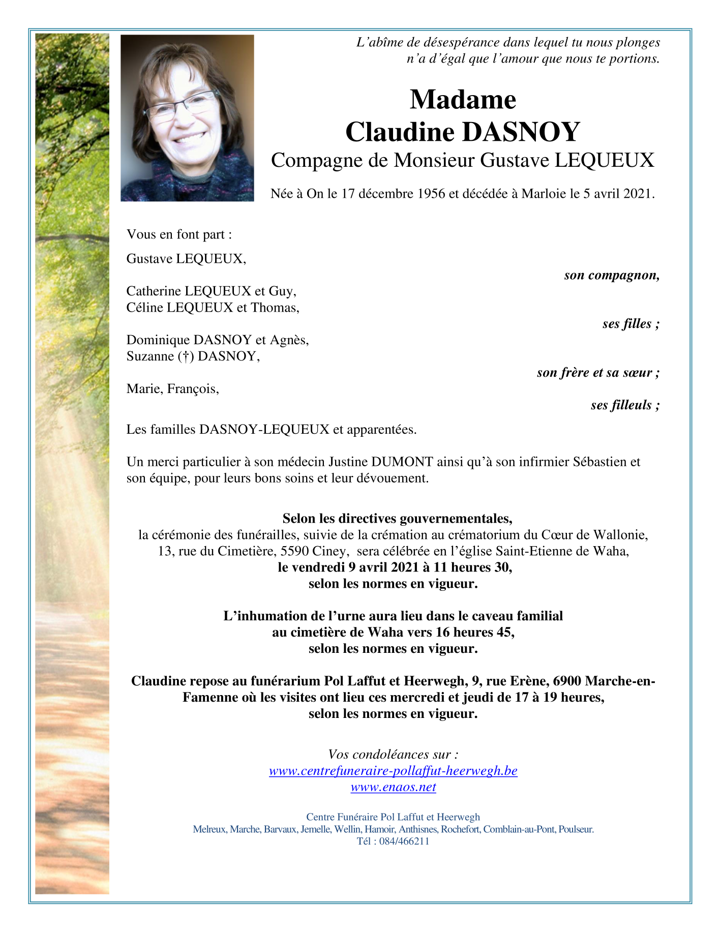 Died in Marloie (6900) on 05 April 2021 at the age of 64 years