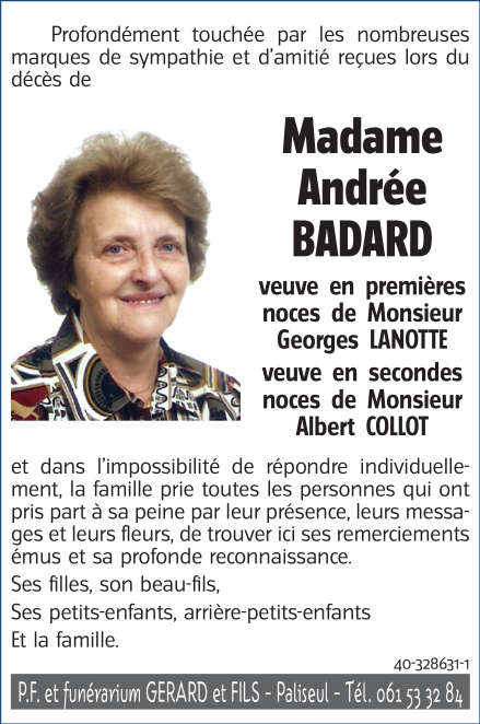 Décédée à Bertrix (6880) le mercredi 4 décembre 2019 à l'âge de 95 ans