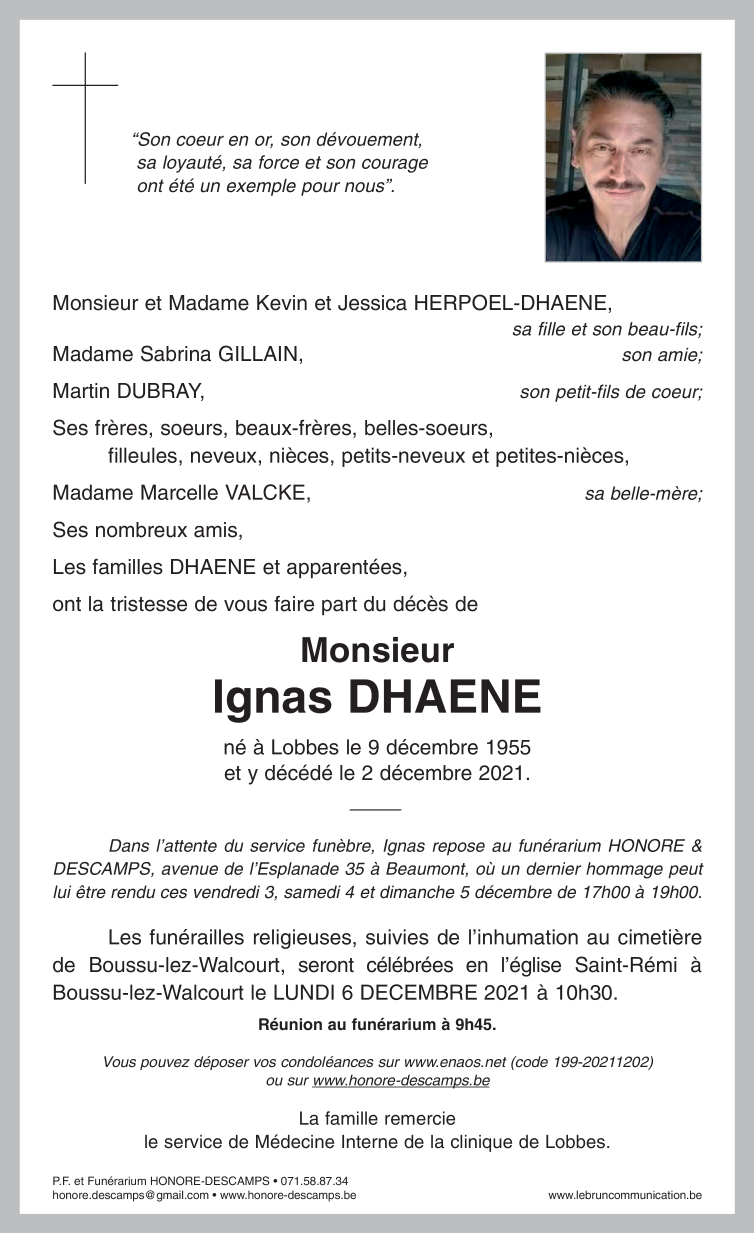 Overleden te Lobbes (6540) op donderdag 2 december 2021 op 65-jarige leeftijd