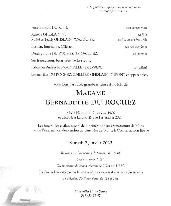 Fallecida en La Louvière (7100) el domingo, 1 de enero de 2023 a la edad de 56 años