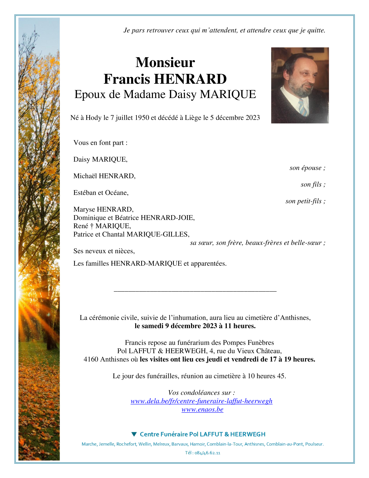Fallecido en Liège (4000) el martes, 5 de diciembre de 2023 a la edad de 73 años