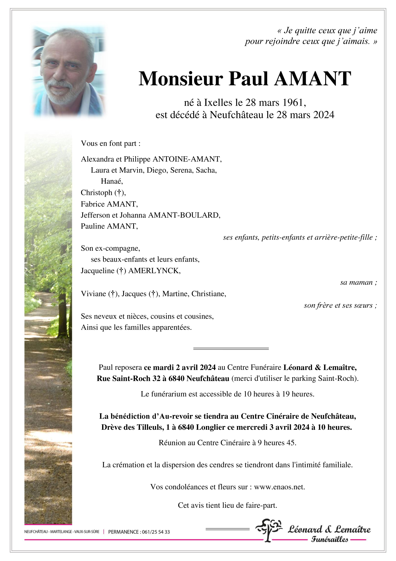 Décédé à Neufchâteau (6840) le jeudi 28 mars 2024 à l'âge de 63 ans