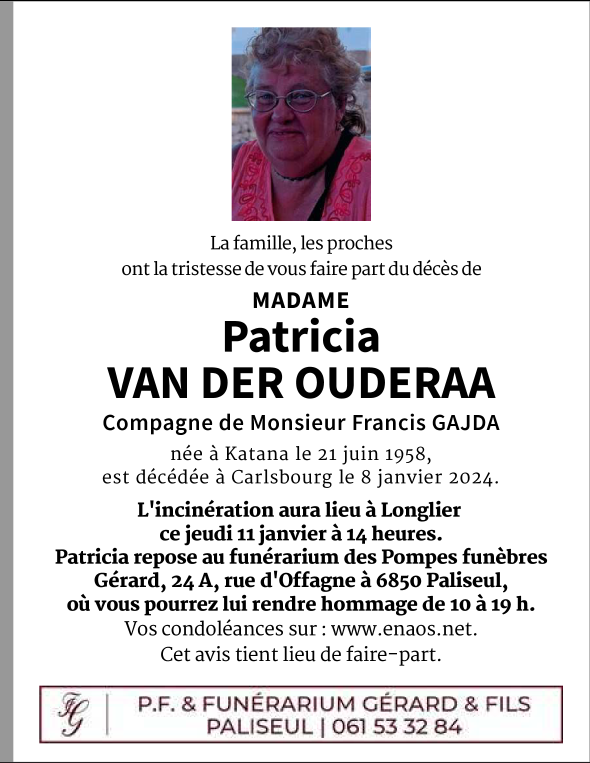 Madame Patricia VAN DER OUDERAA