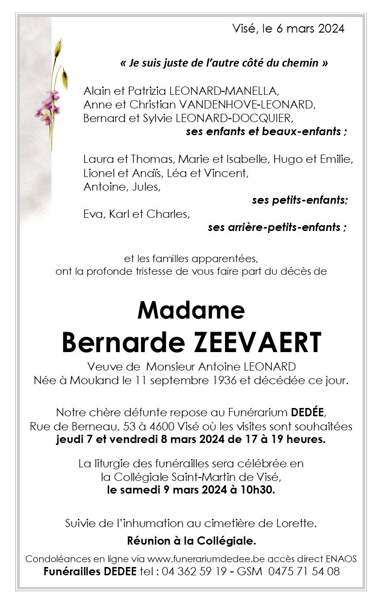 Madame Bernarde ZEEVAERT