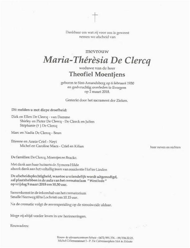 Died in Evergem (9940) on 02 March 2018 at the age of 88 years