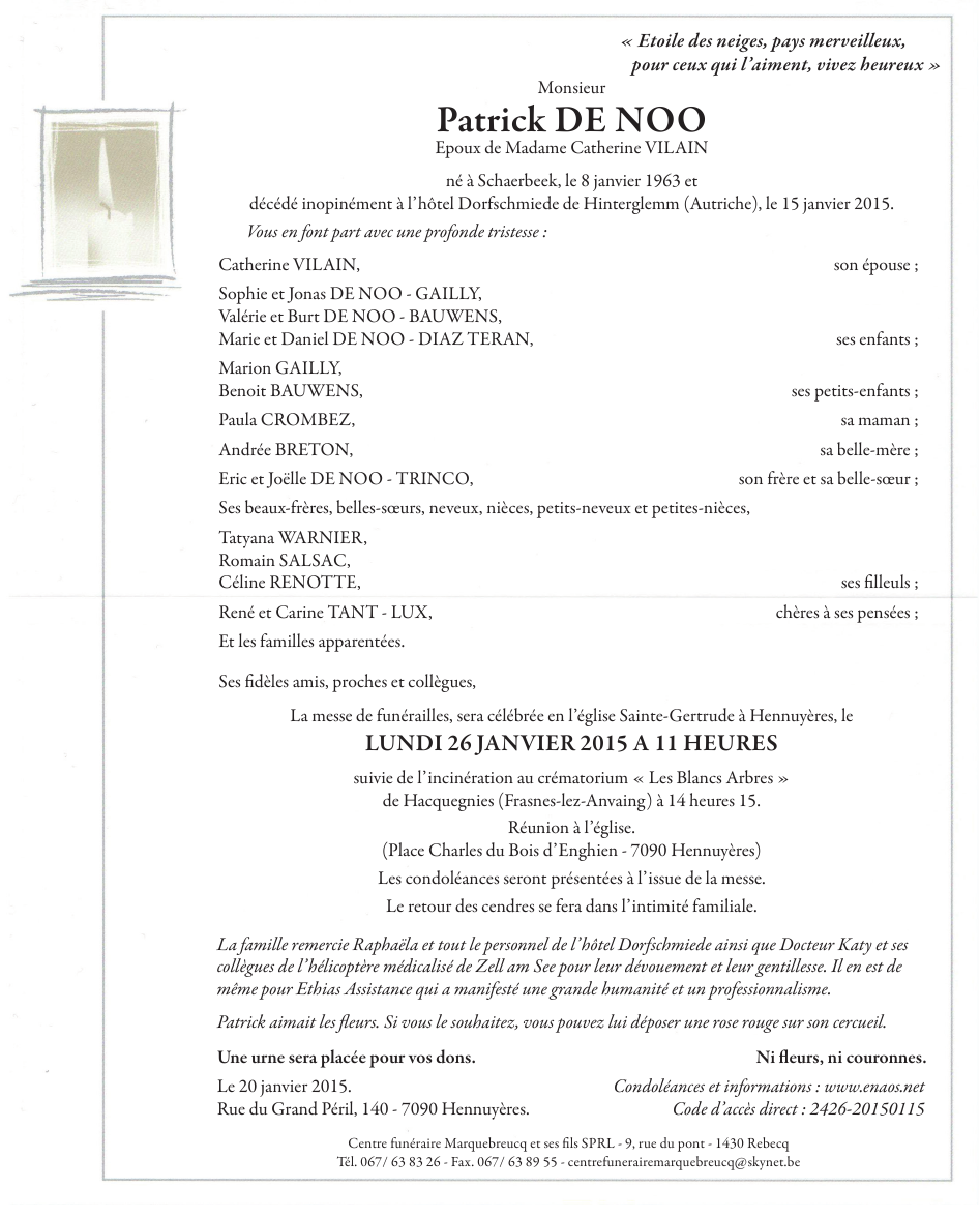 Overleden te Saalbach (5753, Oostenrijk) op donderdag 15 januari 2015 op 52-jarige leeftijd
