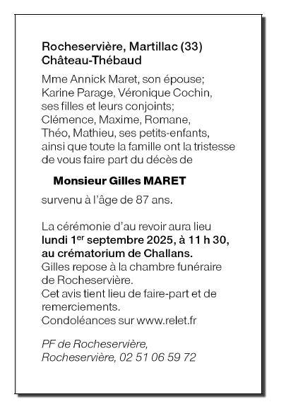 Décédé à Montaigu (85600, France) le mercredi 27 août 2025 à l'âge de 87 ans