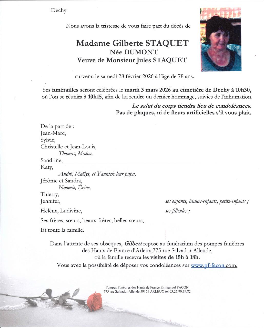 Madame Gilberte STAQUET née DUMONT