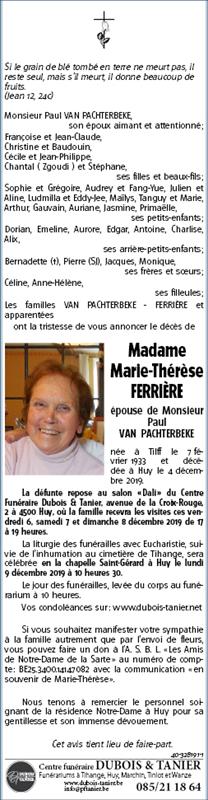 Echtgenote van Monsieur Paul VAN PACHTERBEKE