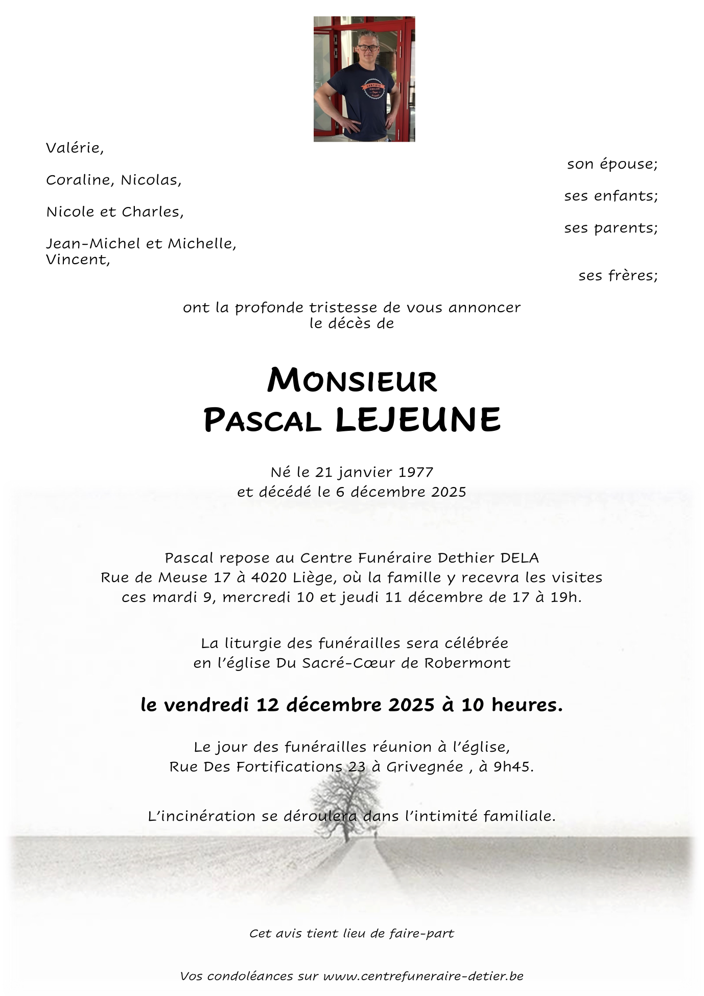 Décédé à Herstal (4040) le samedi 6 décembre 2025 à l'âge de 48 ans