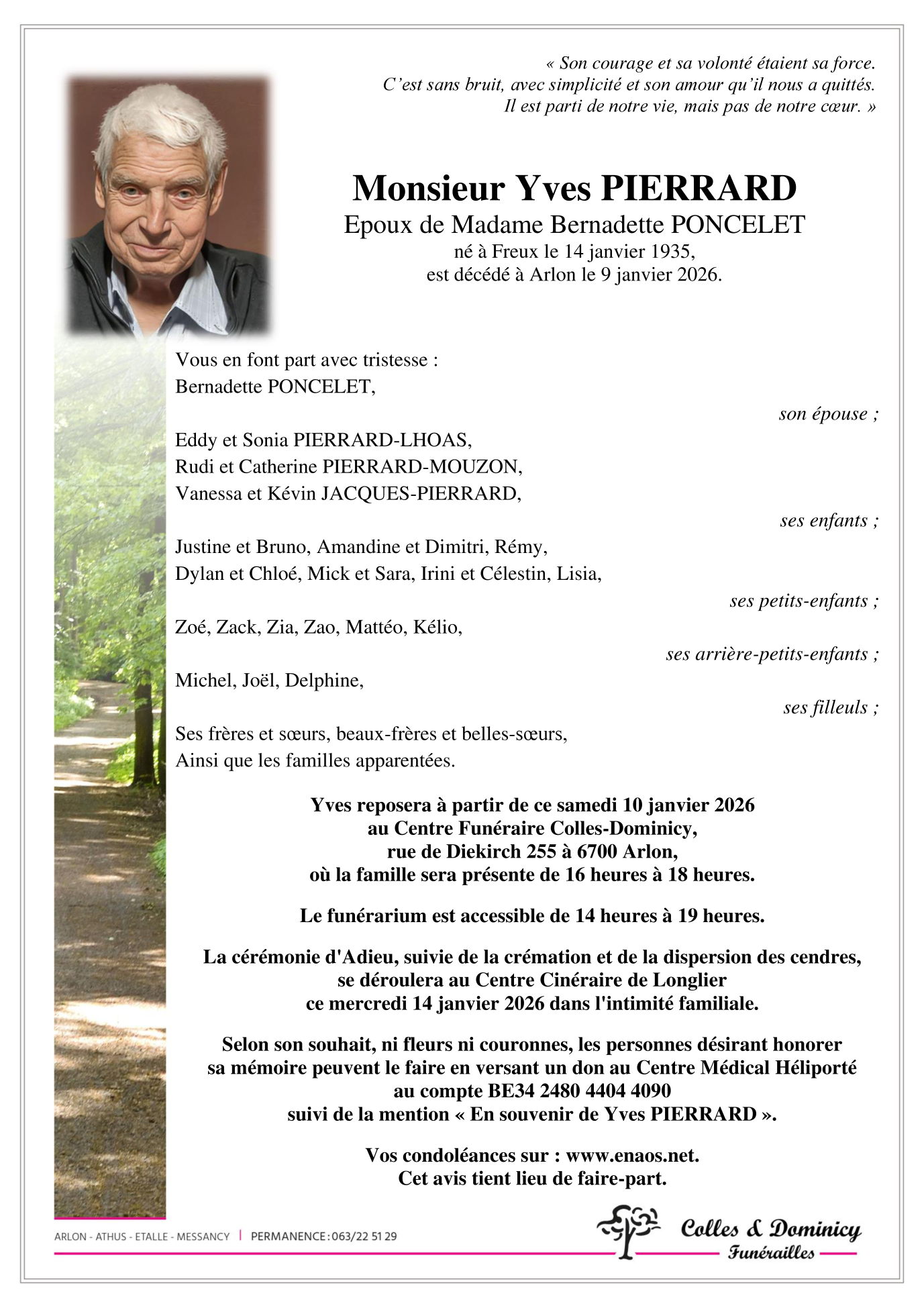 Décédé à Arlon (6700) le vendredi 9 janvier 2026 à l'âge de 90 ans
