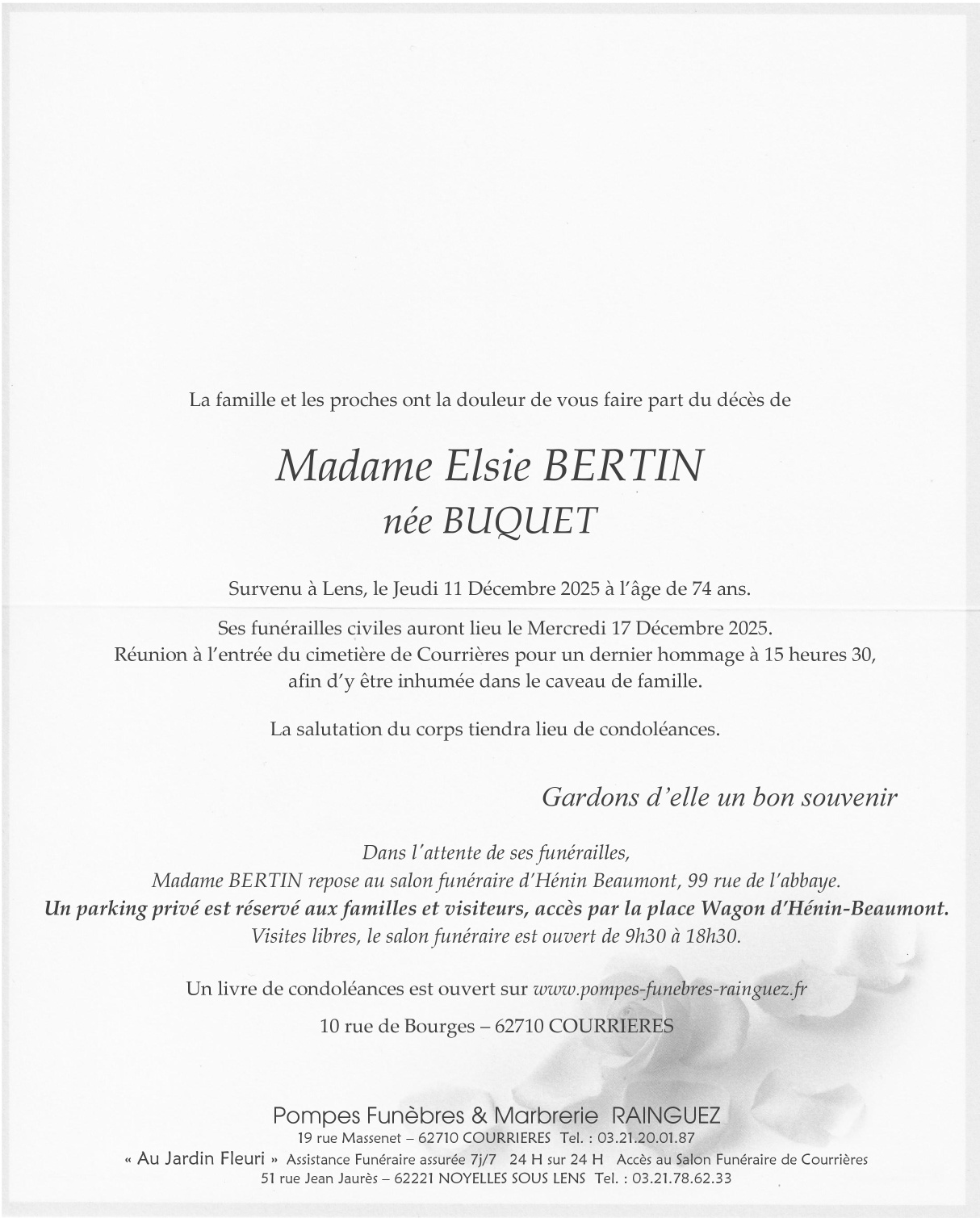 Décédée à Lens (62300, France) le jeudi 11 décembre 2025 à l'âge de 74 ans