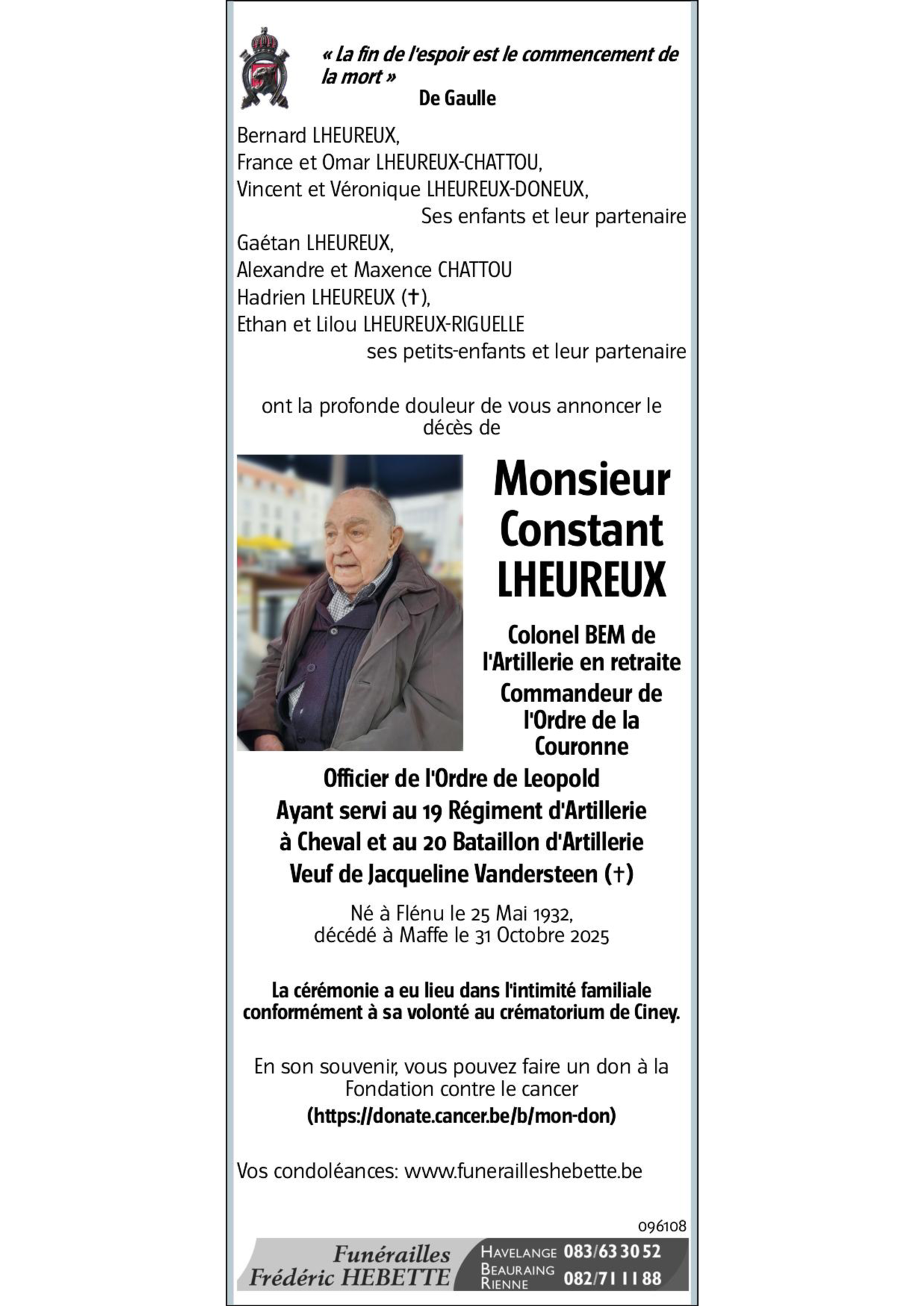 Décédé à Maffe (5374) le jeudi 6 novembre 2025 à l'âge de 93 ans