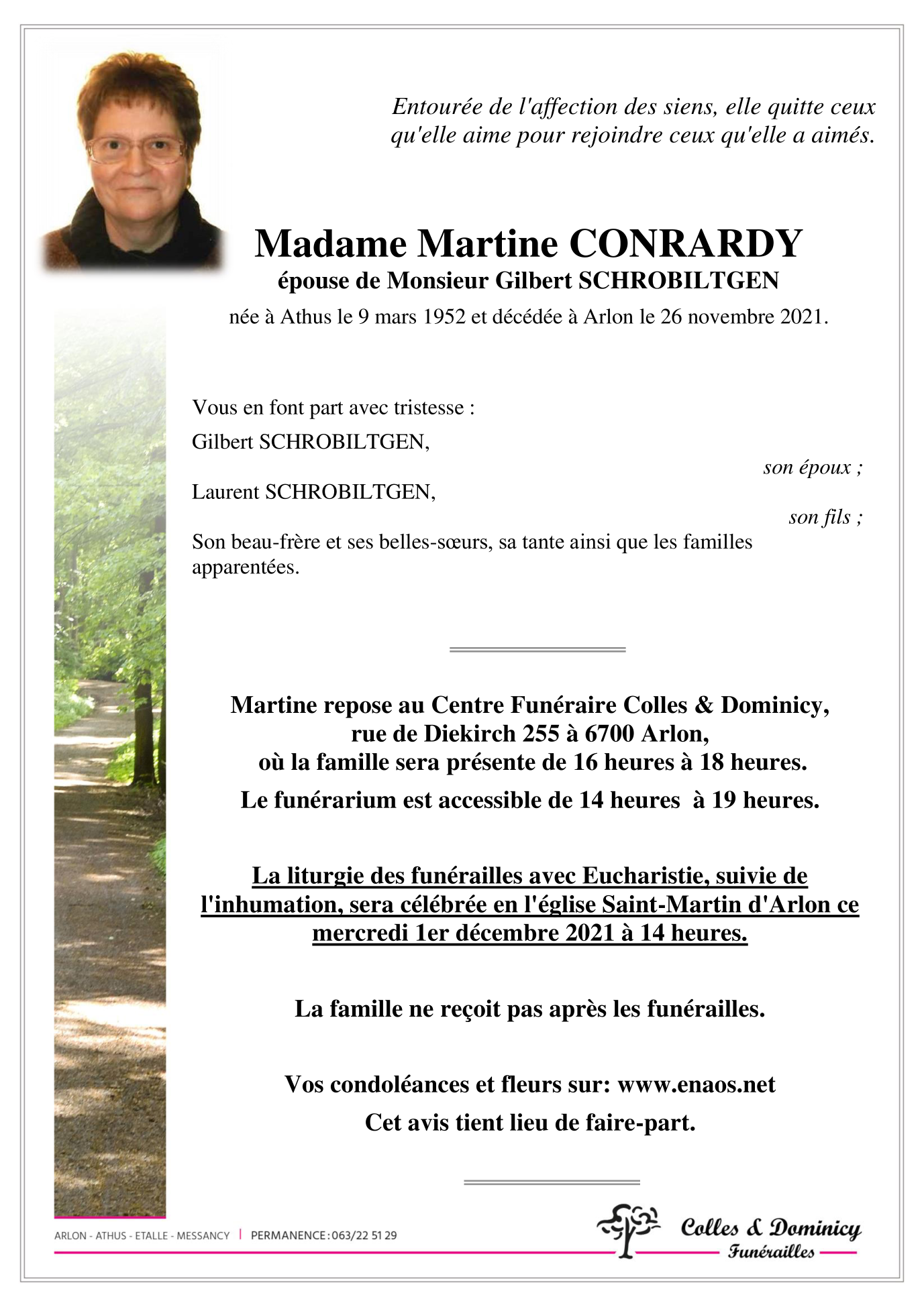 Epouse de Monsieur Gilbert SCHROBILTGEN